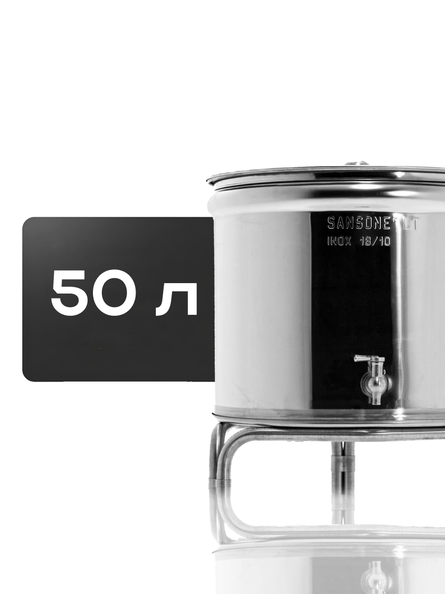 Емкость с пылезащитной и пневматической (плавающей) крышкой из пищевой нержавеющей стали. Подходит для бурного брожения (первичное), для тихого брожения (вторичное) и для длительного хранения (созревания продукта).